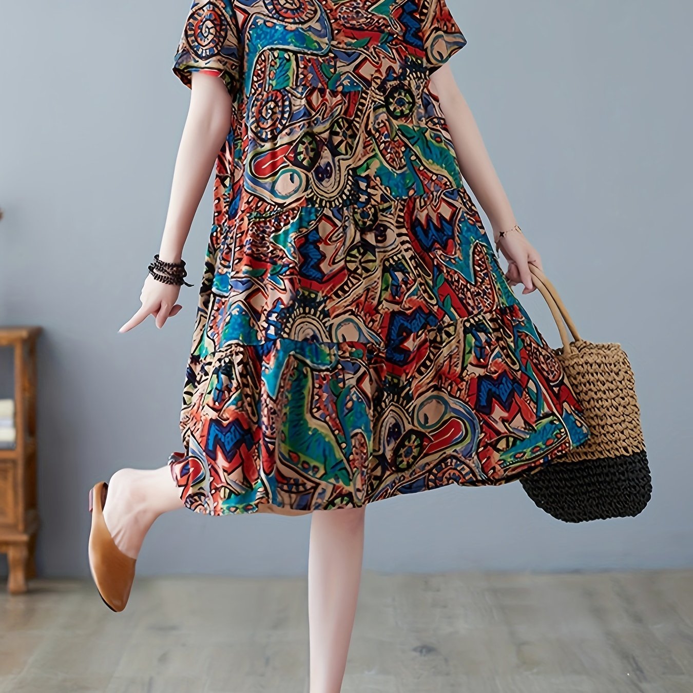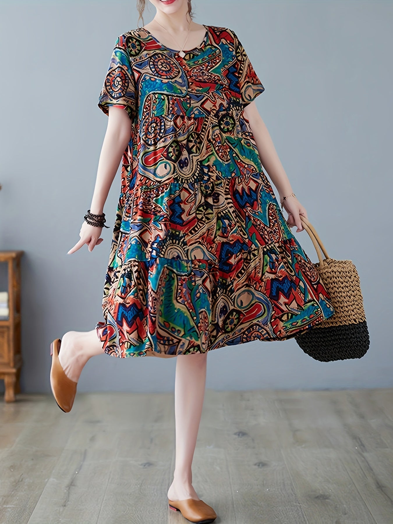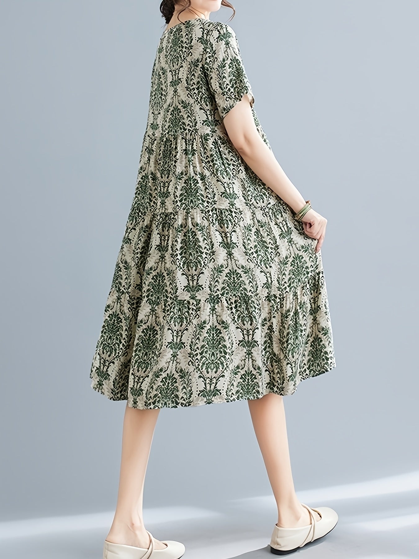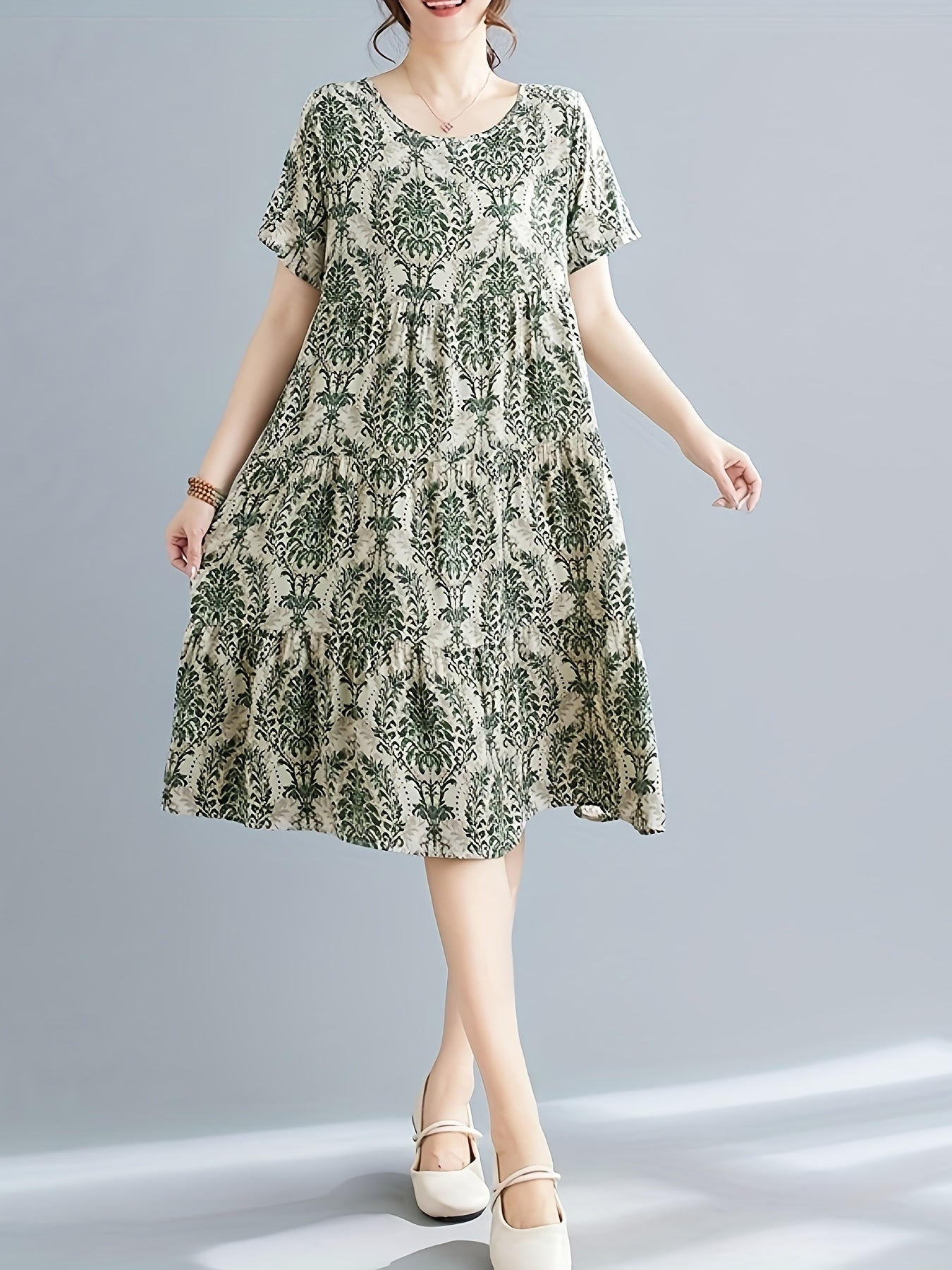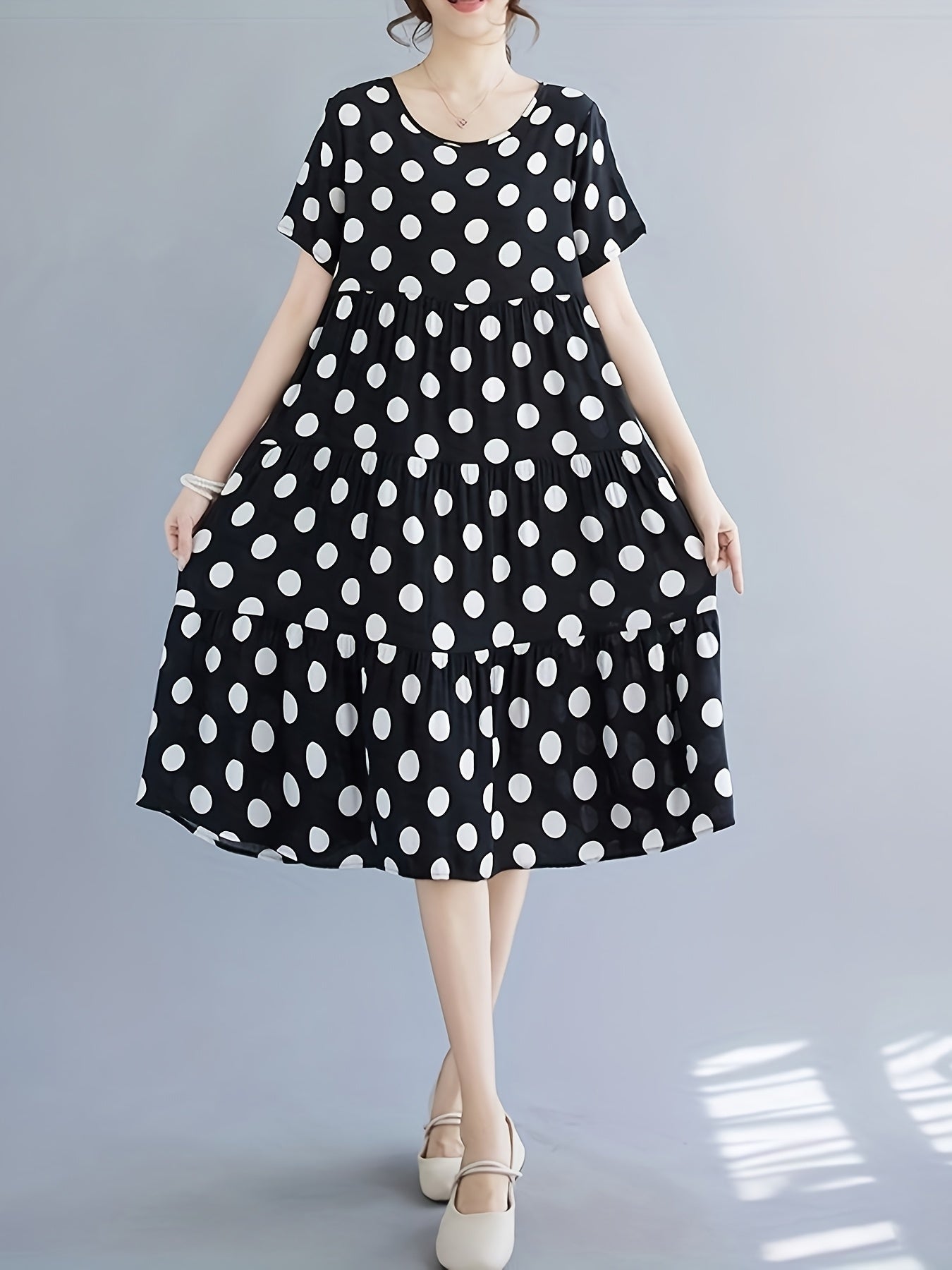 A versatile casual dress for women who love comfort, simplicity, and timeless pattern design.