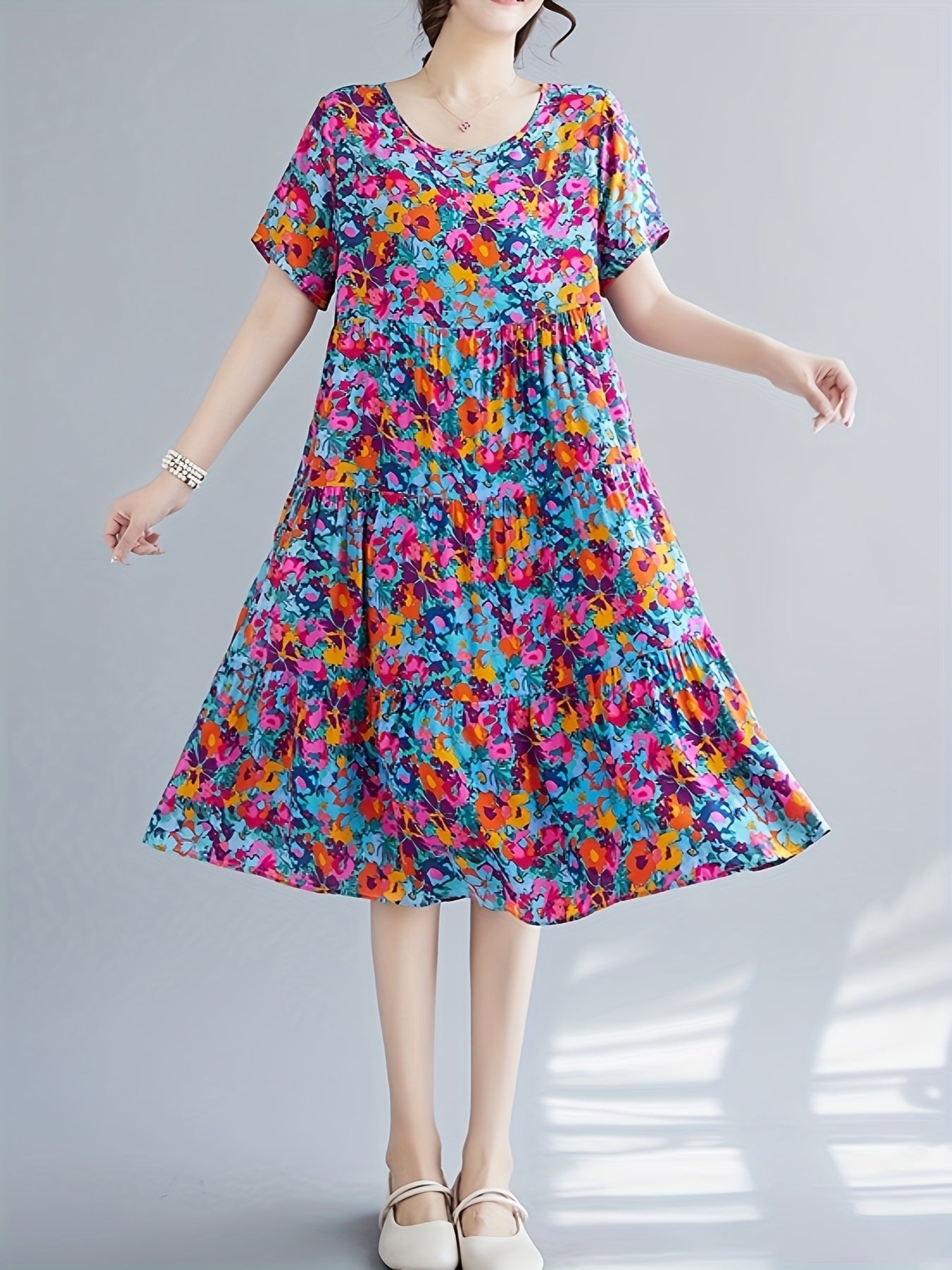 Perfect for spring and summer wear, this dress is ideal for casual outings, daily errands, or laid-back gatherings. Its easy fit allows free movement and all-day comfort, making it a reliable choice for warm-weather dressing.