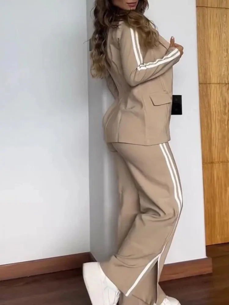 Effortless style meets everyday comfort with the Stridez™ Luxe Co-ord Set. Featuring a sleek blazer and wide-leg pants with sporty side stripes, this versatile set takes you from laid-back weekends to city strolls with ease. Pair it with sneakers for a cool, relaxed vibe or dress it up with heels for a modern, polished look. Crafted with lightweight, breathable fabric, it’s perfect for Aussie weather and designed for women who love chic style without compromising comfort.