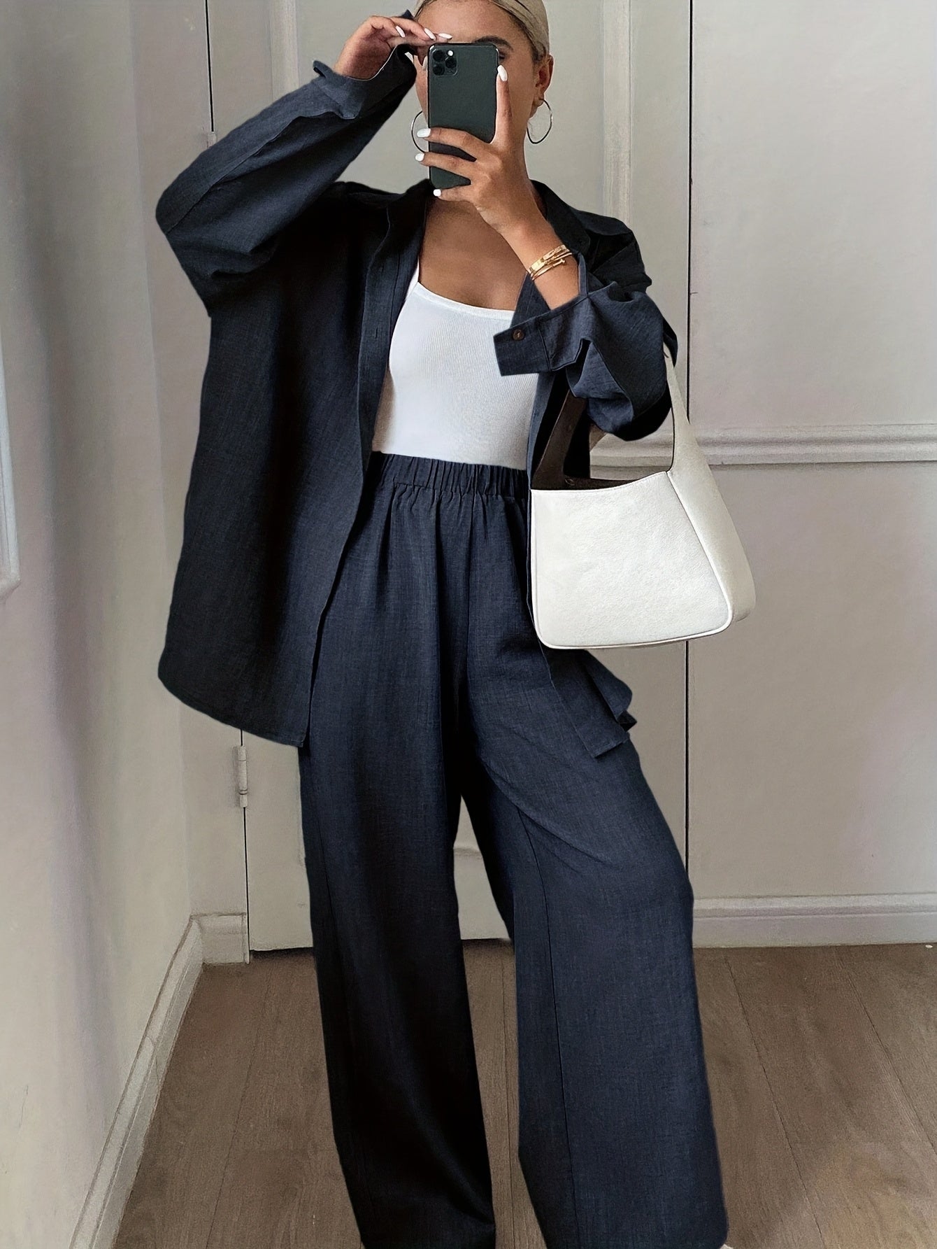 Effortless, airy, and beautifully relaxed — the DeniLite™ Imitated Denim Two-Piece Set gives you the look of denim with the comfort of lightweight, breathable fabric. Perfect for warm-weather days, this set features a loose, flowy top paired with matching wide-leg shorts or trousers (depending on variant), creating an easy, flattering silhouette ideal for holidays and beach escapes.